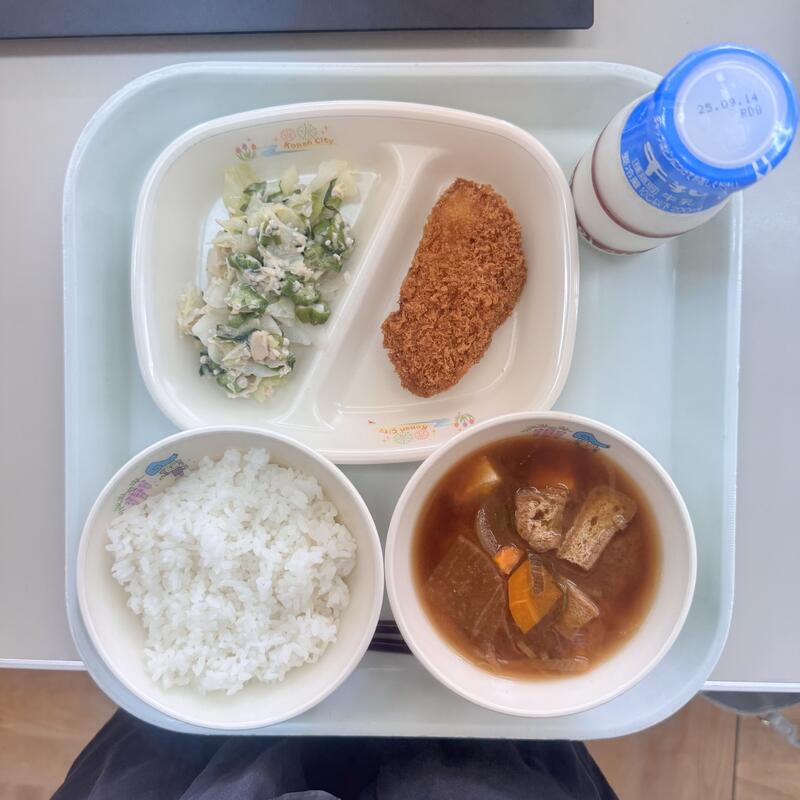 令和7年9月3日 江南市藤の花給食センター 小学校 投稿日時 : 2025/09/03 株式会社メフォス ご飯 牛乳 合わせみそ汁 あじフライ オクラとささみの梅じそ和え 0 {{options.likeCount}} {{options.likeCount}}